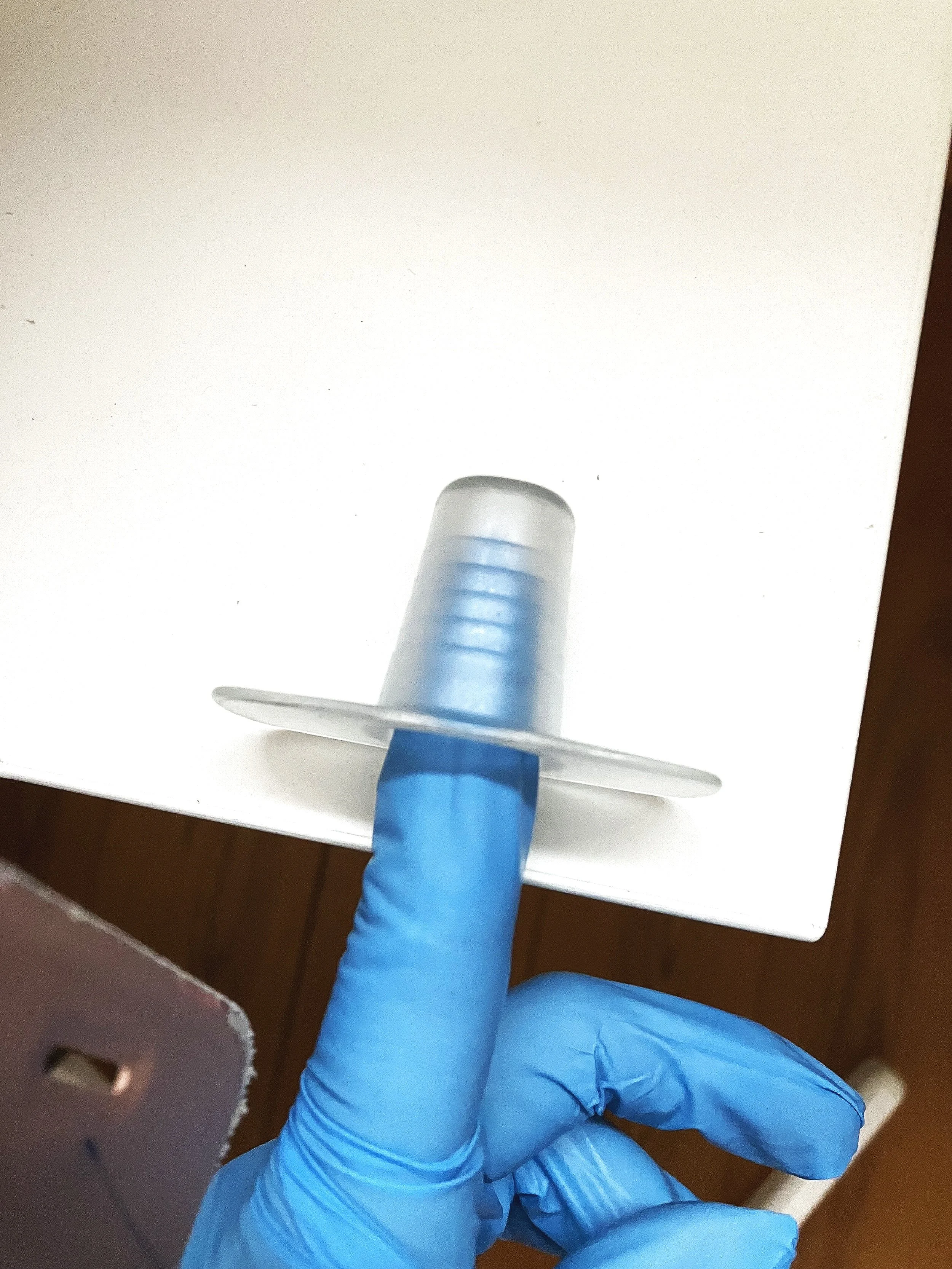 FINGER SHIELD TO BE USED OVER A (DISPOSABLE) GLOVED HAND.